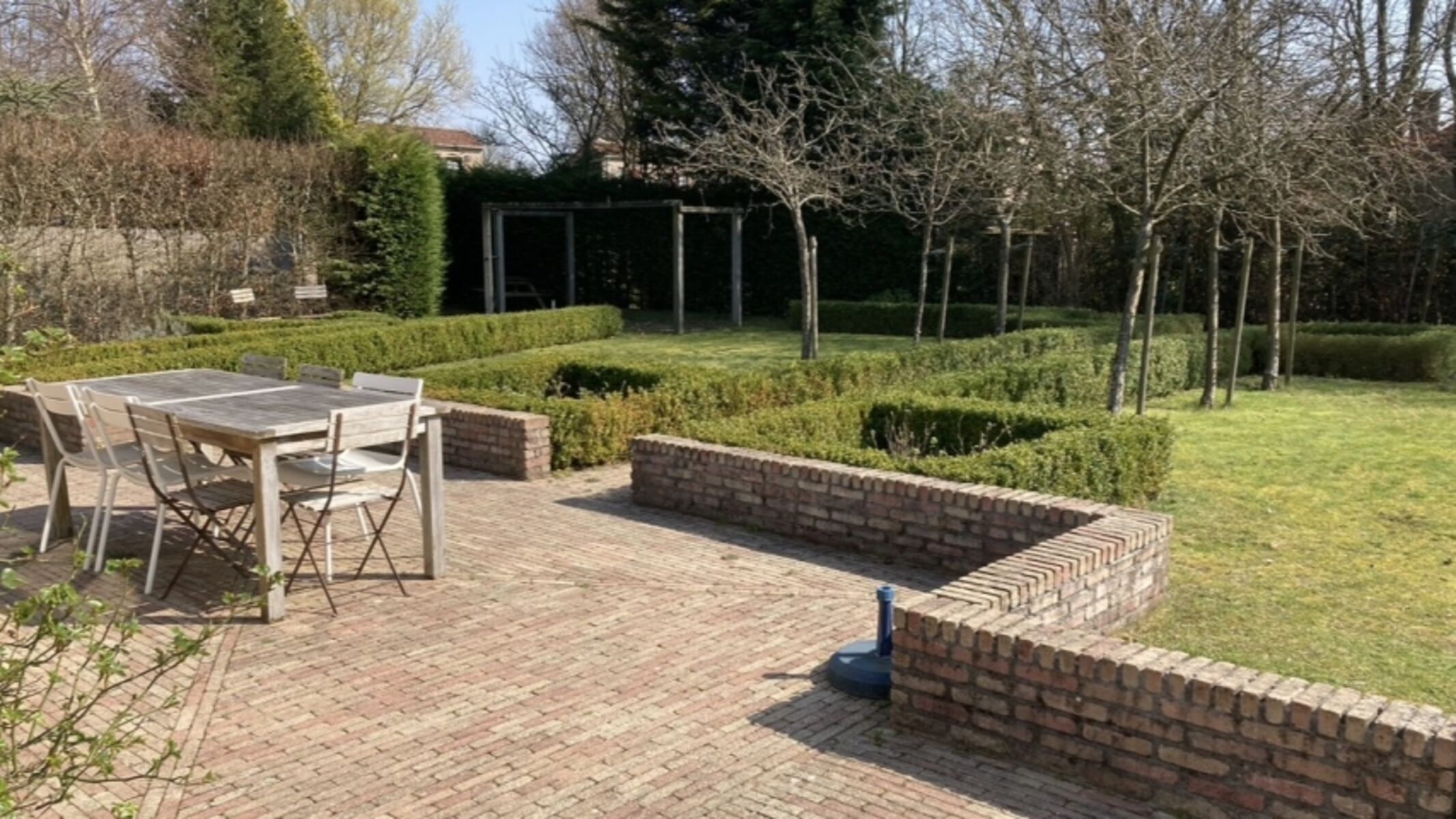Der große, vollständig eingezäunte Garten bietet viel Privatsphäre und ganztägig Sonne. Der große Esstisch auf der Terrasse eignet sich hervorragend für gemütliche Abendessen an warmen Sommerabenden. Zudem stehen Sonnenliegen sowie ein Trampolin für Kinder zur Verfügung. Ihr Hund ist ebenfalls herzlich willkommen.