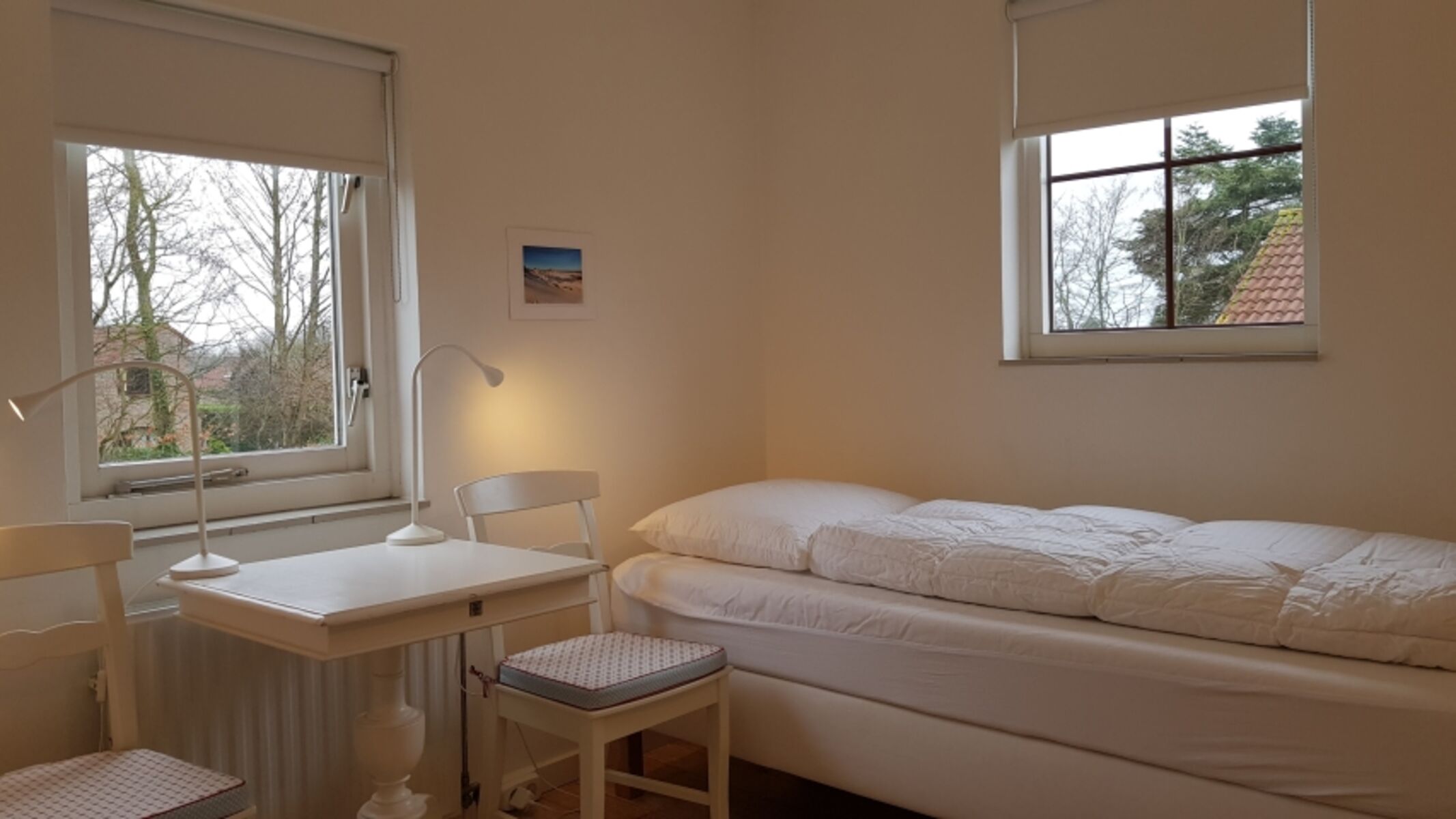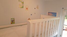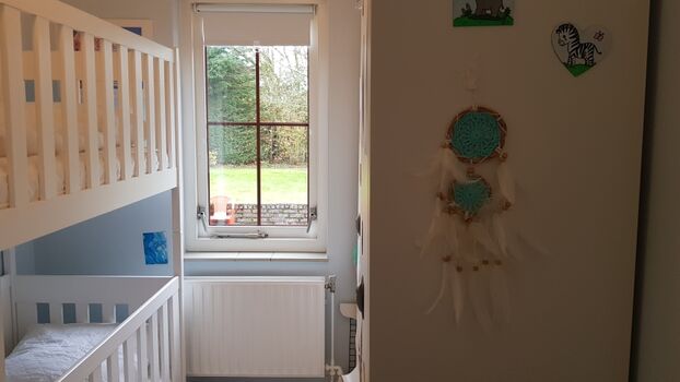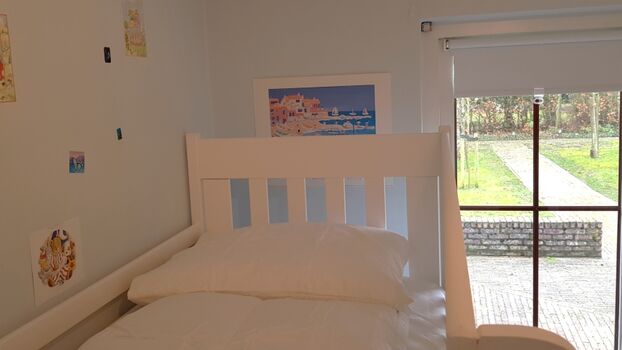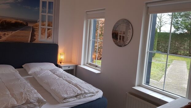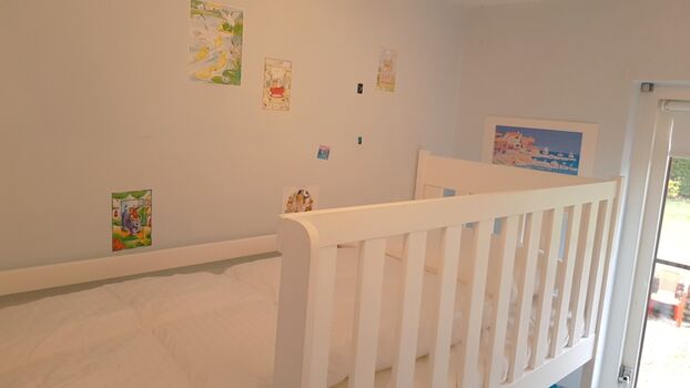 Im Erdgeschoss befinden sich das Hauptschlafzimmer sowie das Kinderzimmer. Das Kinderzimmer ist mit einem Etagenbett (nicht für Erwachsene geeignet) ausgestattet, beide Betten verfügen über eine Absturzsicherung. Das komfortable Badezimmer befindet sich ebenfalls im Erdgeschoss. Im ersten Obergeschoss gibt es zwei weitere Schlafzimmer sowie einen Waschraum mit Toilette. Oben an der Treppe befindet sich ein Treppenschutzgitter. Jedes Schlafzimmer ist mit bequemen Betten und einem Kleiderschrank ausgestattet. Obwohl vier Schlafzimmer vorhanden sind, wird das Haus für maximal 6 Personen vermietet.