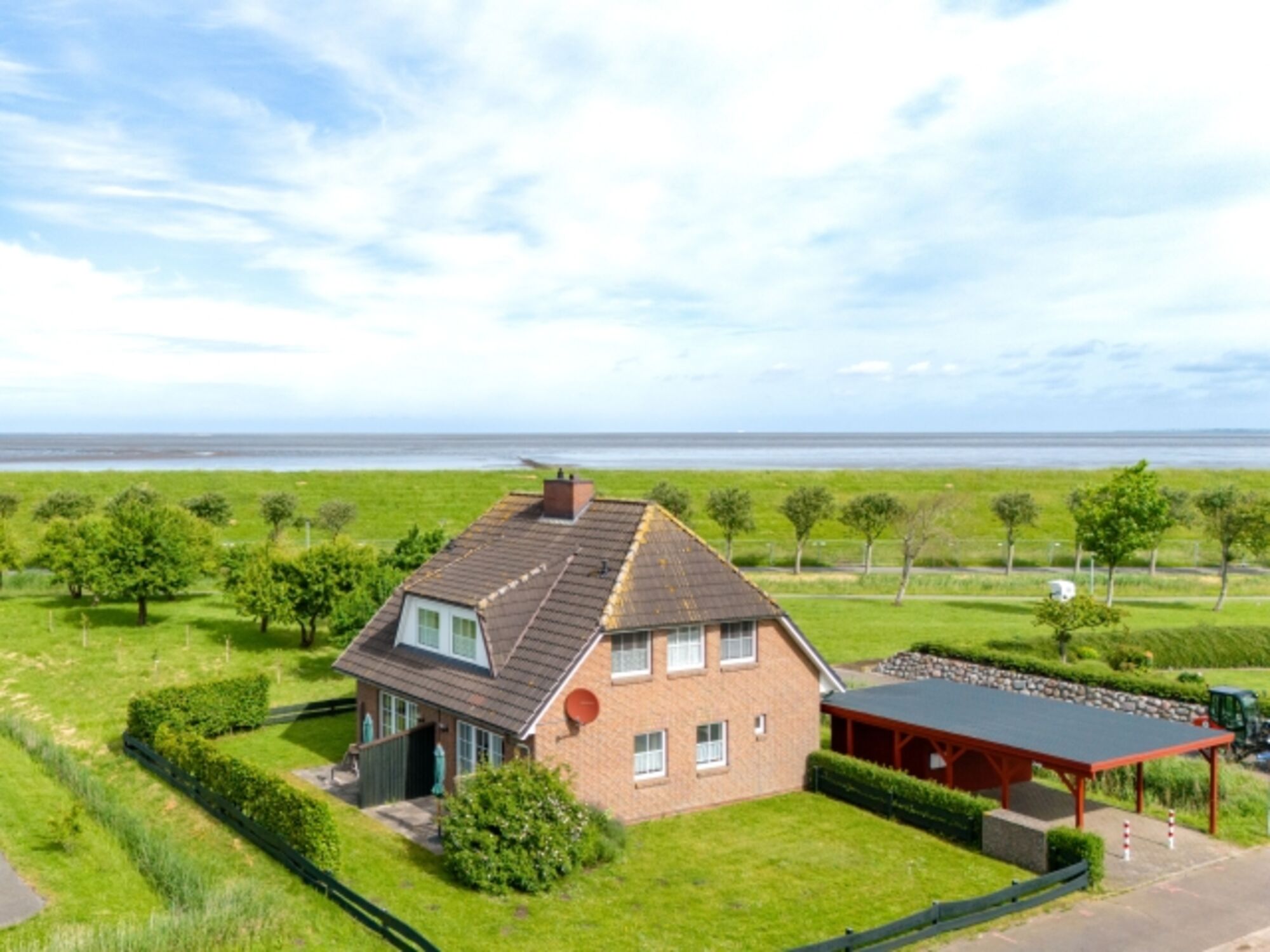 Ferienhaus mit Blick auf den Deich