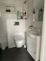 Im Erdgeschoss befindet sich auch eines der drei Schlafzimmer mit komfortablem Doppelbett und Fernseher. Gleich daneben liegt das moderne Bad, das mit einer Badewanne sowie einer begehbaren Dusche ausgestattet ist. Genießen Sie die erfrischende Regendusche und den wohltuenden Sunshower, die Ihren Kreislauf anregen und Ihre Muskeln entspannen. Das WC ist separat, was zusätzlichen Komfort bietet.