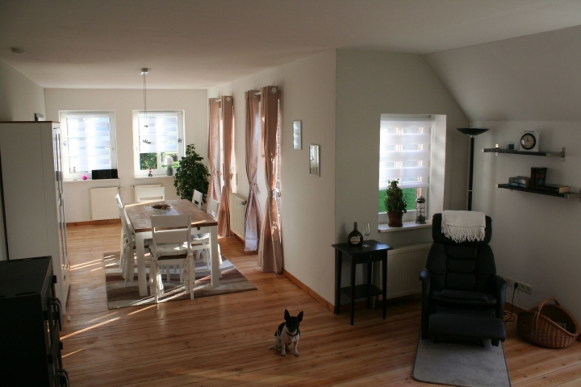 Aus dem offenen Ess-/Wohnbereich bietet sich ein erholsamer Blick und im Winter lassen sich die Wildgänse während des Frühstücks beobachten. Das Sofa lässt sich zu einer Schlafcouch ausklappen, sodass neben den beiden Schlafzimmern 2 weitere Personen Platz finden können. Auch ein Babybett und Zustell-Klappbett sind vorhanden.