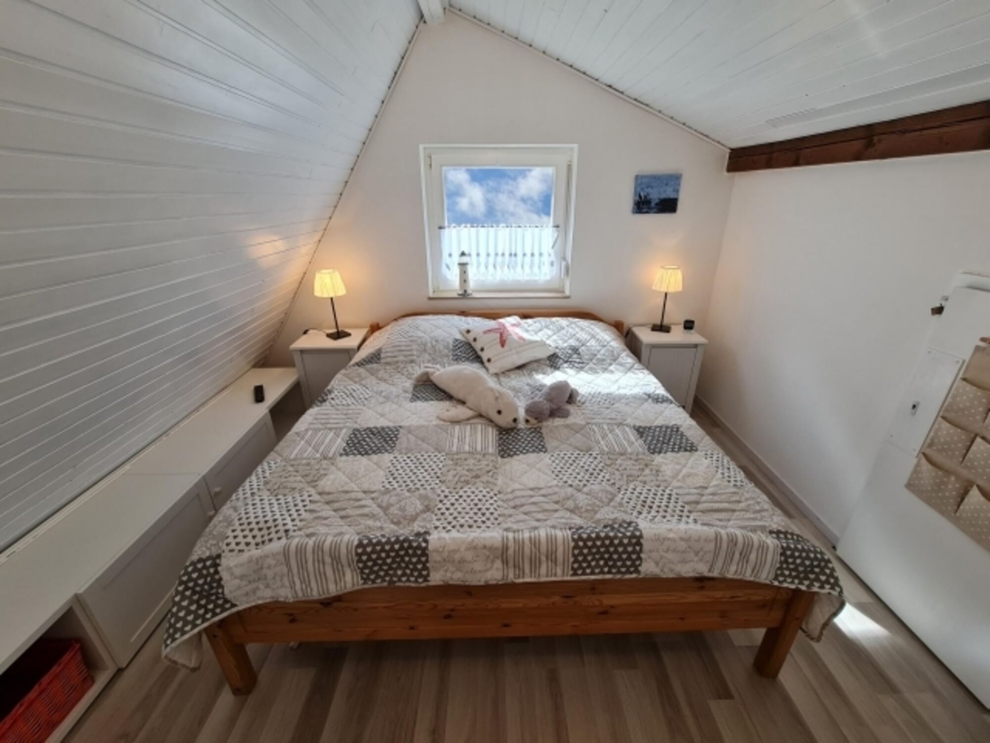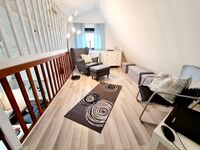 Auf der halboffenen Galerie erwartet Sie eine einladende Lese- und Spielecke sowie ein kleiner Schreibtisch, der sich perfekt für produktives Arbeiten im Home Office eignet. Das Ferienhaus Nordsee-Robbe bietet Ihnen somit die ideale Kombination aus Erholung und der Möglichkeit, ganz bequem von dort aus zu arbeiten.