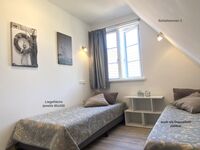Genießen Sie schon beim Ankommen das Wohlfühlgefühl des skandinavischen Flairs, der Ihrem Urlaubsgefühl etwas ganz Besonderes verleiht.. Diese sonnige 4-Zimmer-Nichtraucherwohnung besticht nicht nur durch die tolle Raumaufteilung sondern auch mit dem Familienbett im größten der 3 Schlafräume: Entspannt Schlafen, das ist auch hier möglich, da es einzelne Lattenroste und Matratzen sind. Neben dem Doppelzimmer mit Leseecke und kleinem Arbeitsplatz gibt es noch ein 2-Bettzimmer welches auch als Doppelbettzimmer genutzt werden kann. Die Wohnung liegt im 1. OG eines Einzelhauses in einer ruhigen Wohnstraße.