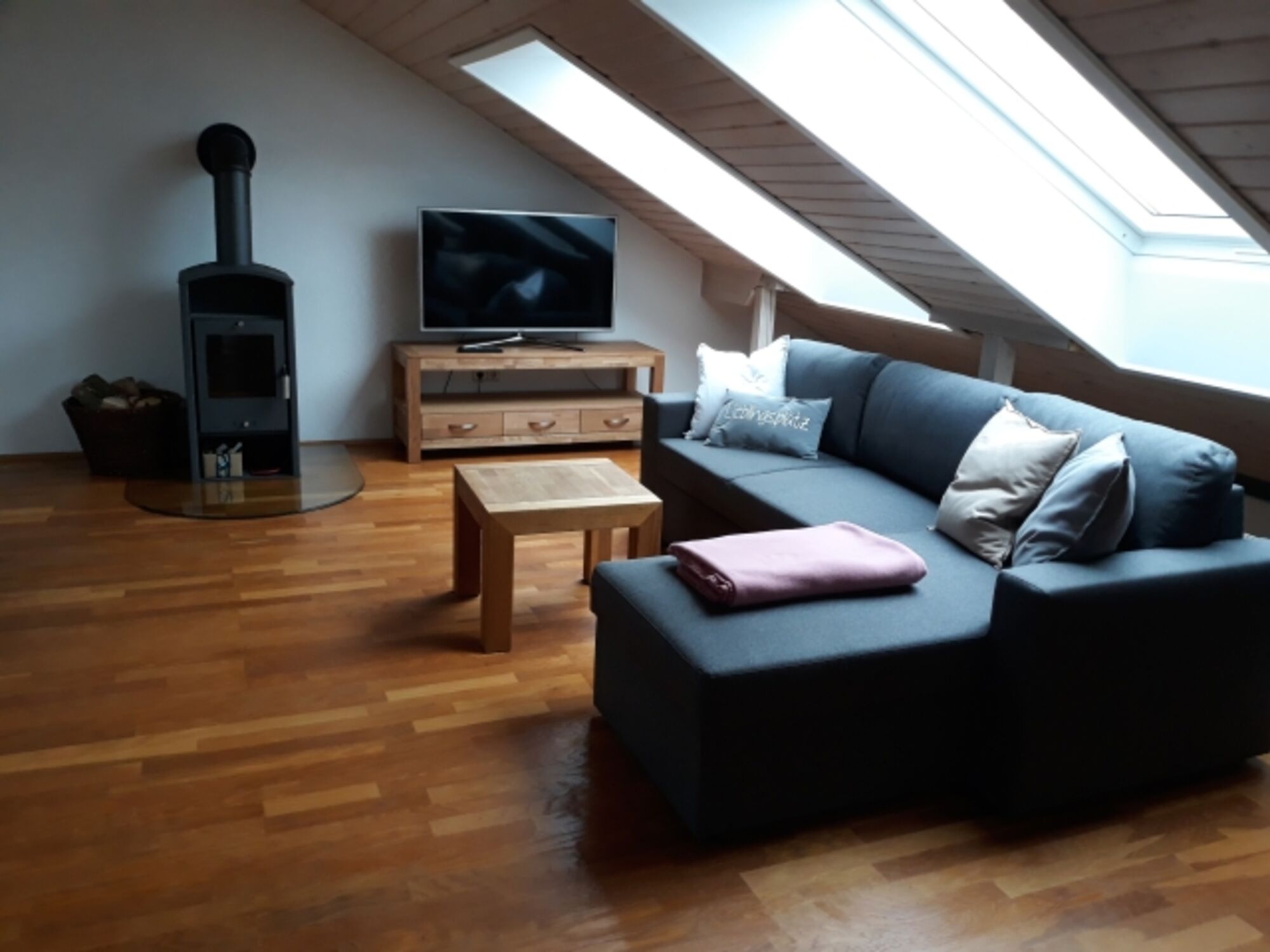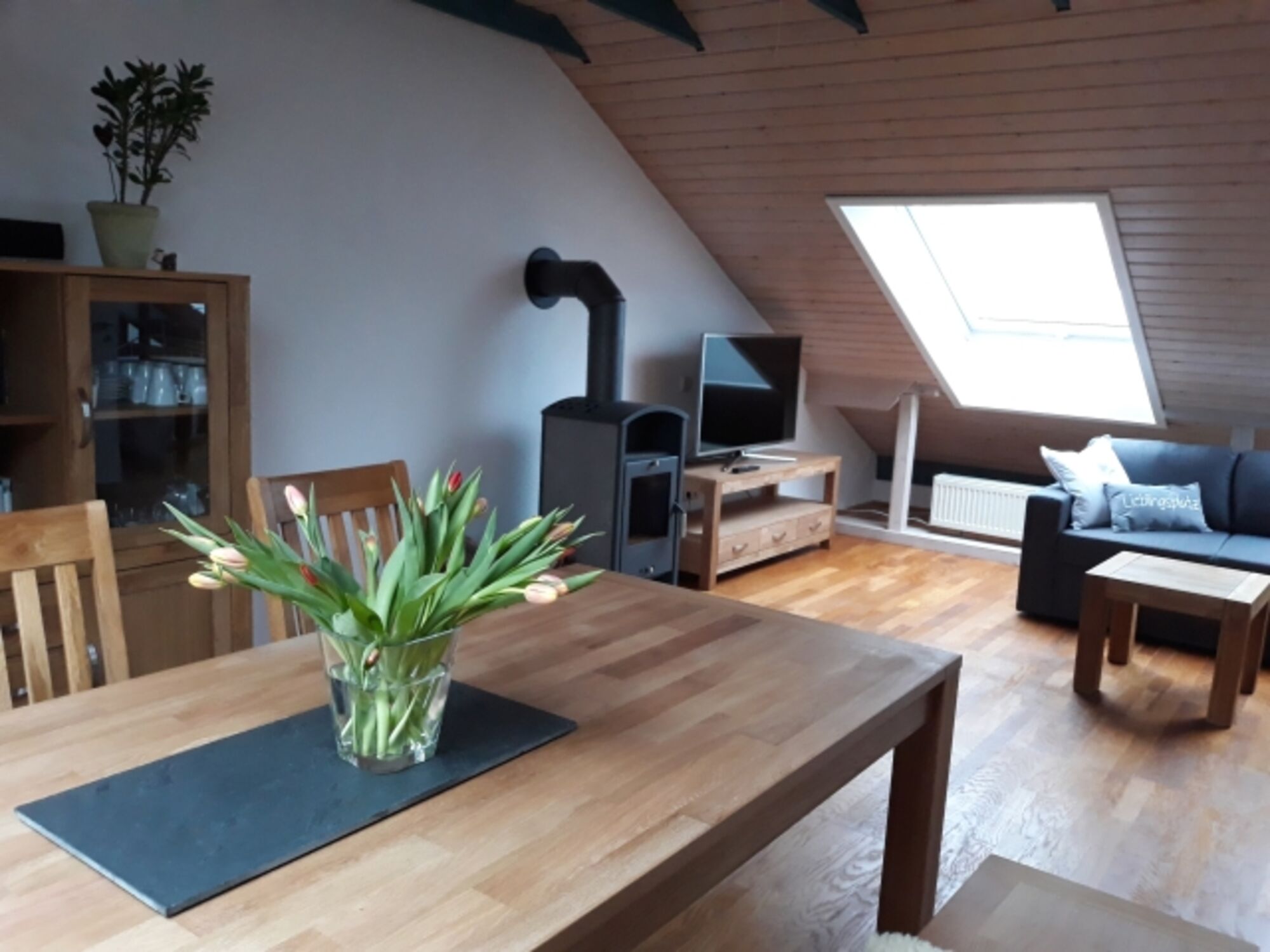 Das offene Wohnkonzept unterm Dach bietet ein besonderes Flair und ist lichtdurchflutet zugeschnitten. In unserem schönen Garten stehen für Sie Gartenmöbel und ein Grill bereit.