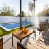 Treffen Sie draußen in Ihrem privaten, eingezäunten 470 m² großen Garten ein, wo Ruhe und Entspannung auf Sie warten. Das Highlight ist ein wunderschöner 8x4 Meter großer Salzwasserpool, der mittels Elektrolyse eine natürlichere Schwimmerfahrung bietet, die sanft für Haut und Augen ist. Rund um den Pool liegt weicher Kunstrasen, ideal zum Sonnenbaden oder Spielen, sowie bequeme Liegestühle für lange, entspannte Nachmittage.