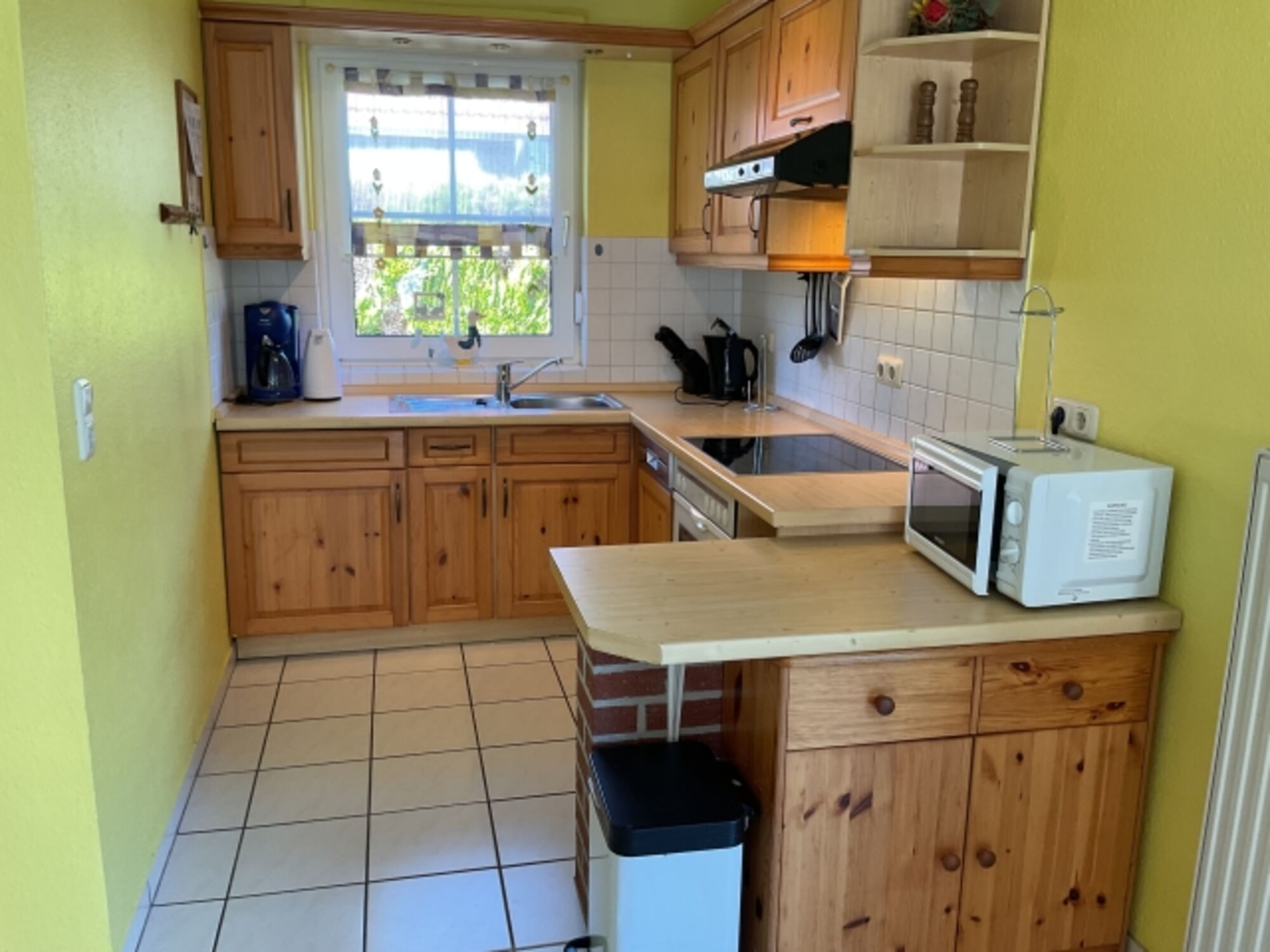 4-Platten Herd, Dunstabzugshaube, Kühlschrank mit Gefrierfach, Eierkocher, Essplatz in der Küche