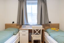 In den zwei Schlafzimmern findet ihr erholsamen Schlaf nach aktiven Tagen in der Natur. Ein Schlafzimmer ist mit einem hochwertigen Doppelbett 180 x 200cm ausgestattet, das andere Schlafzimmer bietet 2 Einzelbetten und einen Schreibtisch.