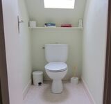 Das Haus verfügt über zwei separate Toiletten. – Im Erdgeschoss befindet sich eine Toilette neben dem Badezimmer, jedoch nicht im Badezimmer. – Im Obergeschoss befindet sich eine separate Toilette. Waschbecken, Spiegel, Fenster im Bad