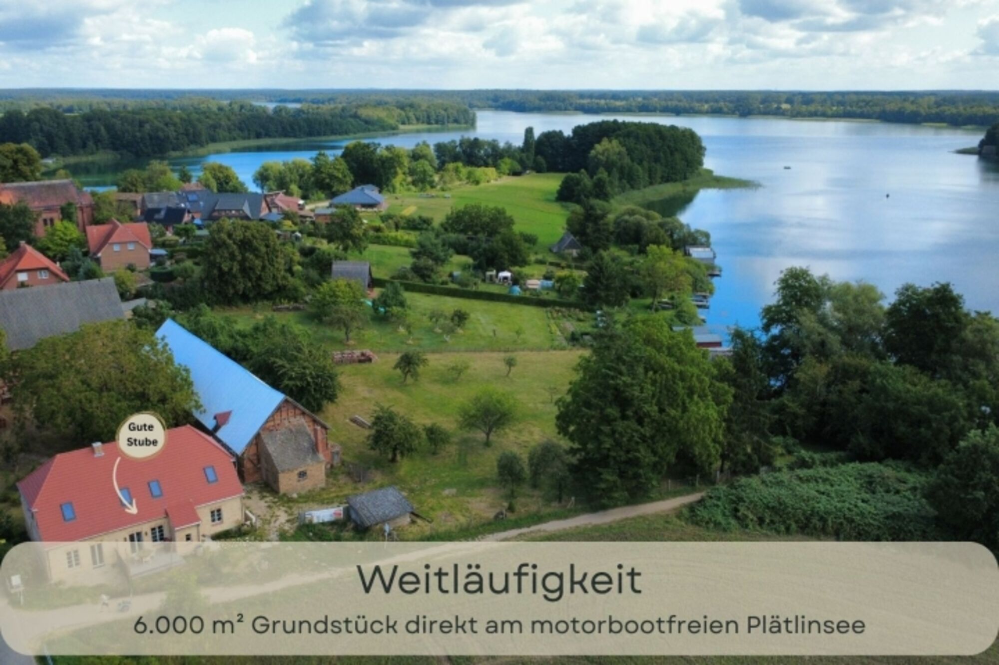 - Exklusive Lage: 6.000 qm Grundstück mit direktem Seezugang (Plätlinsee: motorbootfrei & ruhig).