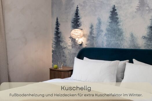1. Hygge & Wärme pur: Während es draußen kühler wird, genießt du drinnen pure Gemütlichkeit. Die Fußbodenheizung sorgt in der gesamten Wohnung für wohlige Wärme. Für das ultimative Kuschelgefühl im Bett liegen in der kalten Jahreszeit Heizdecken für dich bereit. Entspanne unter der großzügigen Regendusche nach einem langen Spaziergang und lass den Tag bei einem Glas Wein in unserer stilvoll eingerichteten Wohnküche ausklingen.