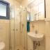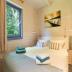 Zwei Schlafzimmer – eines mit Doppelbett (180 × 200 cm), eines mit Etagenbett – sowie ein gefliestes Duschbad befinden sich im hinteren, separaten Bereich des Hauses.