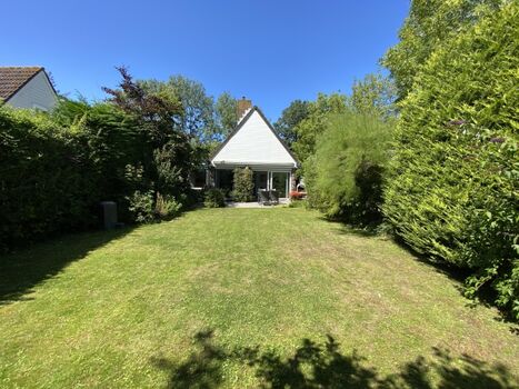 Das Haus hat eine Wohnfläche von ca. 125 m² und steht auf einem großzügigen Grundstück von ca. 900 m² mit einem schön angelegten, sehr geschützten Garten. Rund um das Haus befindet sich ein ca. 750 m² großer Garten, sodass Sie den ganzen Tag zwischen Sonne und Schatten wählen können. Dank der geschützten Lage genießen Sie hier optimale Privatsphäre und Ruhe.