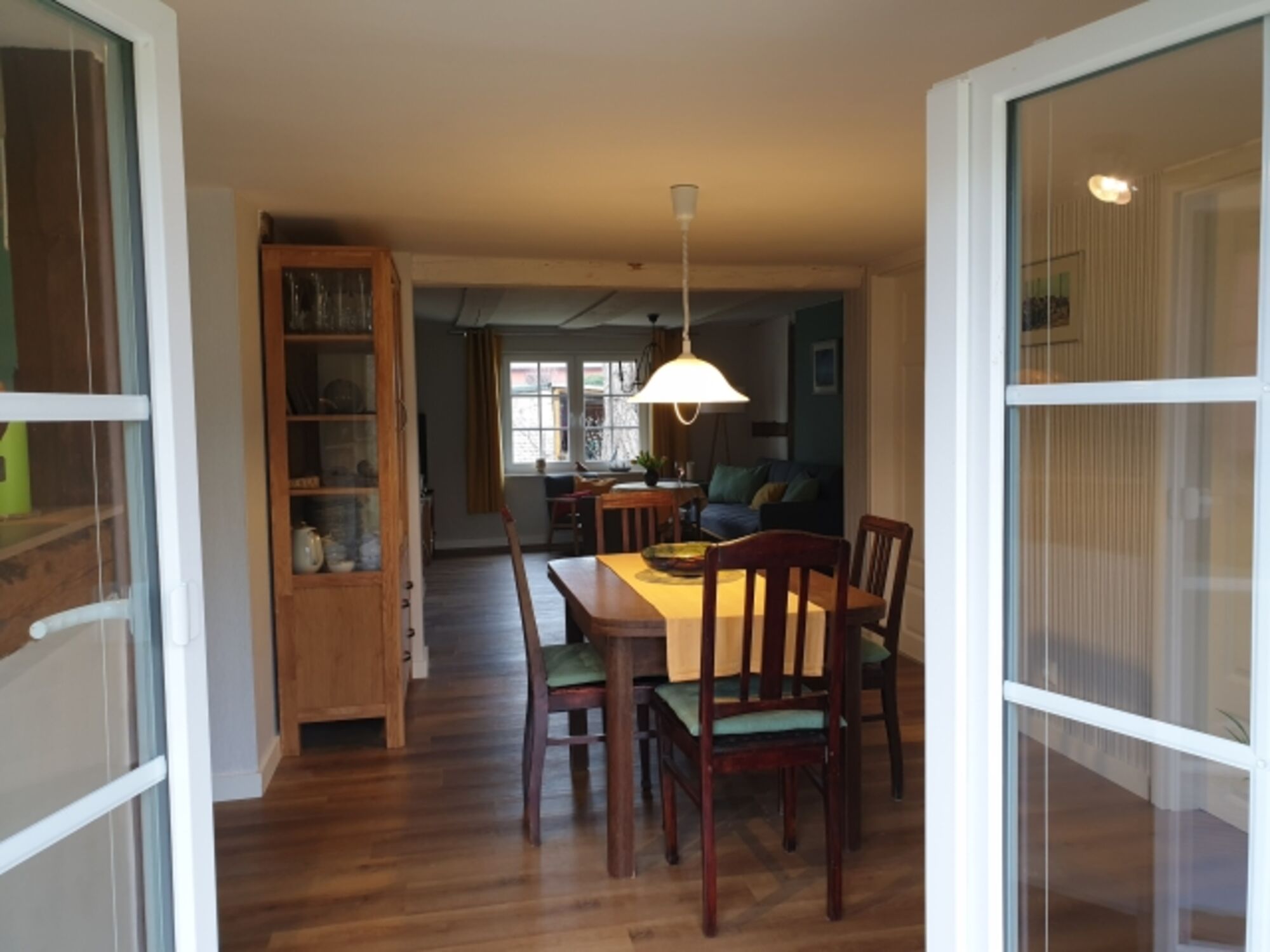 Im alten Dorfkern des Fischerdorfs Spandowerhagen steht seit etwa 200 Jahren das „Fischerhaus am Strom“. Als Gast tauchst du dort mit bis zu 4 Personen und einem Kleinkind in total entspannten Urlaub ein, weitab von Stress und Hektik. Bei der Sanierung wurde Wert darauf gelegt, möglichst viel vom alten Charme zu erhalten. So ist nicht nur das Reetdach ein sicherer Schutz gegen Hitze und Kälte, gegen Sturm und Hagel, auch die noch erhaltenen Balken des Fachwerks mit teilweise sichtbarer Lehmausfachung geben dir das Gefühl, in einer ganz anderen Welt zu sein. Schon bei der Anfahrt verlässt du die glatten Wege und kannst das ungewohnte Schaukeln und Rütteln auf dem Kopfsteinpflaster genießen. Hier fährst du eben im Urlaubsmodus!