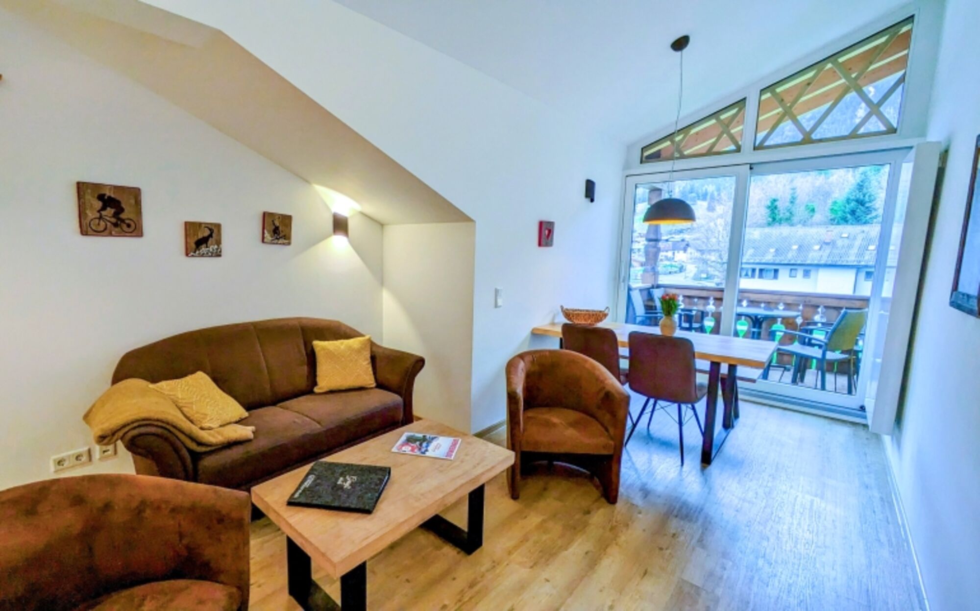 Erleben Sie alpines Wohlbefinden im zweiten Obergeschoss des Ferienhauses Wetterstein. Die Ferienwohnung „Alpspitze“ bietet auf großzügigem Raum ein gemütliches Zuhause für bis zu vier Personen. Das absolute Highlight: Zwei private Balkone (Ost und Süd) schenken Ihnen eine faszinierende Aussicht, die Sie so schnell nicht vergessen werden. Besonders der Blick von unserem neu errichteten Seitengiebel auf die imposante Bergwelt sucht seinesgleichen!