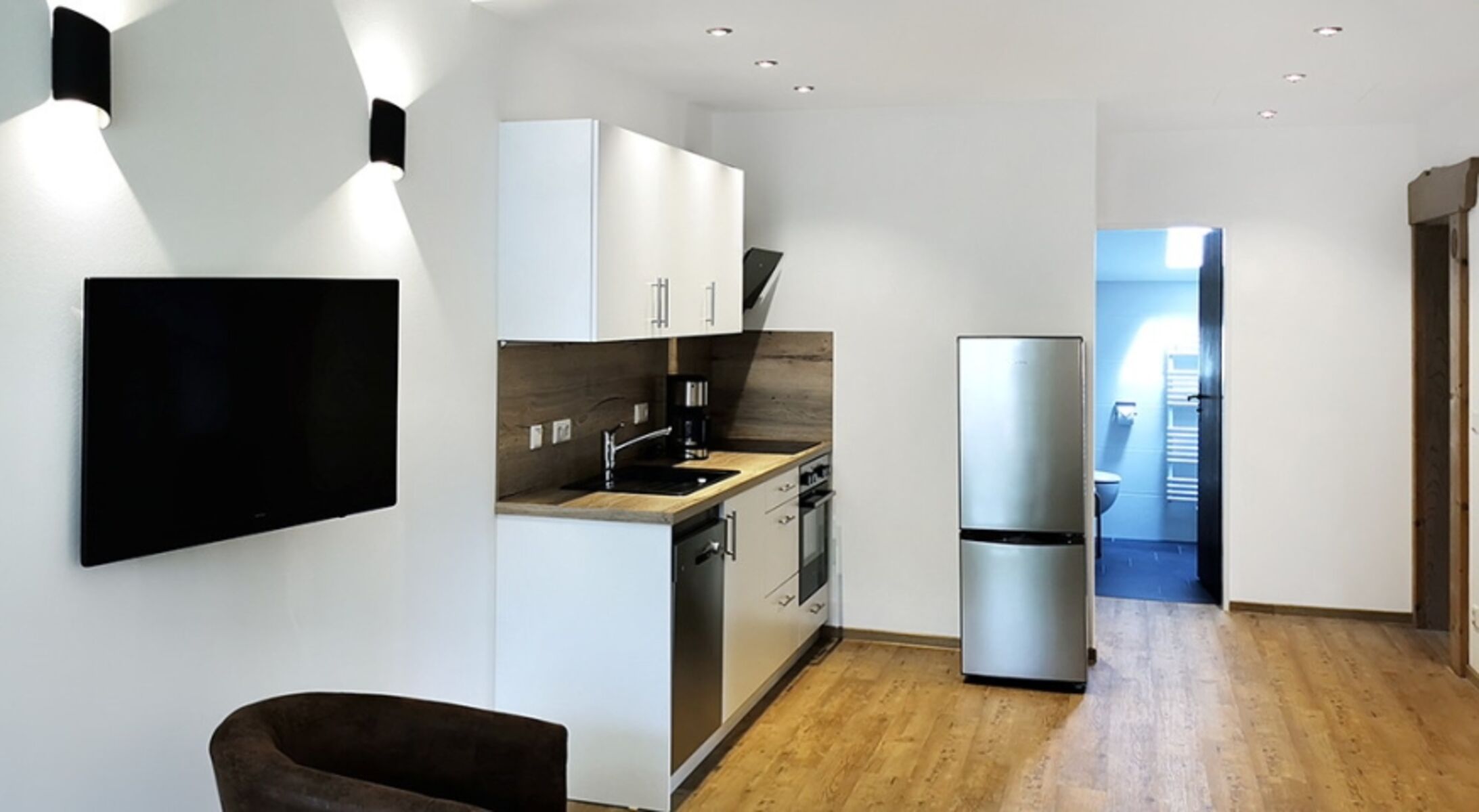 Die Wohnung verfügt über einen einladenden Wohnbereich, zwei separate Schlafzimmer sowie ein geräumiges Badezimmer mit Dusche, Badewanne und WC. In der modern ausgestatteten Küche finden Sie alles, was das Herz begehrt, um kulinarische Momente zu zaubern. Ein besonderes Extra für Umwelt und Komfort: Genießen Sie unser kristallklares Grainauer Quellwasser direkt aus dem hauseigenen Sodastream – lästiges Kistenschleppen gehört der Vergangenheit an.