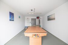 Vom Wohnzimmer haben Sie direkten Zutritt zur Terrasse mit Ihrem Essplatz für nordfriesische Sommerabende. Das Gartengrundstück ist durch einen luftigen Holzzaun eingefasst. Ihren PKW können Sie direkt am Grundstück abstellen und gegen Gebühr die E-Ladestation nutzen. Wer sich im Tischkickern und Billardspielen ausprobieren will, hat im Anbau nebenan Gelegenheit dazu.
