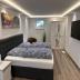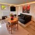 Das Apartment für zwei Personen verfügt über ein großzügiges Bad mit Regendusche und ein großes Schlafzimmer mit 50″ Smart-TV und einem komfortablen 2m breiten King-Size-Bett. Der geräumige Wohn-Ess-Bereich bietet eine moderne Küche, ein Ecksofa, einen 65″ TV mit Fire-TV für alle Streaming-Dienste und einen Esstisch. Direkter Zugang zum Garten und zur eigenen Terrasse mit Gartenmöbeln lädt zum Entspannen ein.
