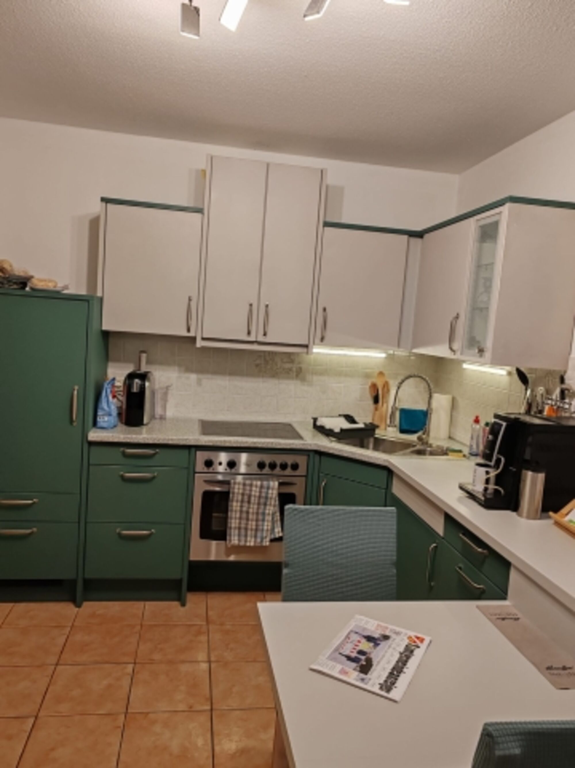 Cerankochfeld, Dunstabzugshaube, Kühlschrank mit Gefrierfach, Mixer, Korkenzieher / Flaschenöffner, Gewürze (Salz, Pfeffer, Zucker), Öl / Essig, Geschirrhandtücher, Mülltüten, Essplatz in der Küche