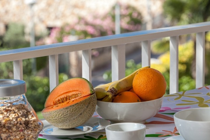 Auf beiden Seiten der Terrasse befinden sich Esstische und Stühle, so dass Sie zu jeder Tageszeit und Sonnenstand das passende Plätzchen zum Frühstück oder Abendessen finden.