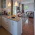 2.) das große Wohn-/Esszimmer mit einer voll ausgestatteten amerikanischen Küche, Esstisch und Stühlen, eine Couch in L-Form, einen Sessel, einen Kaminofen, ein SAT-TV, eine Mikro-Stereoanlage, einen Blue-ray-Player, WIFI/Glasfaser