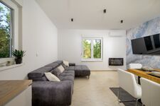 In der näheren Umgebung können Sie den Charme von Pazin entdecken, einer Stadt mit reicher Geschichte, bekannt für das Paziner Schloss und Legenden wie die über die Paziner Schlucht. Naturliebhaber können den Nationalpark Učka besuchen, ideal zum Wandern und Erkunden der natürlichen Schönheit Istriens. Für kulturelle und historische Erlebnisse bieten sich Rovinj und Poreč mit ihren malerischen Gassen, alten Kirchen und der wunderschönen Küste an. Auch Pula, bekannt für das römische Amphitheater, ist leicht für einen Tagesausflug erreichbar.