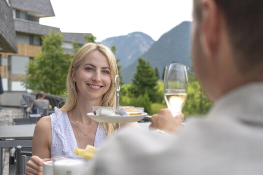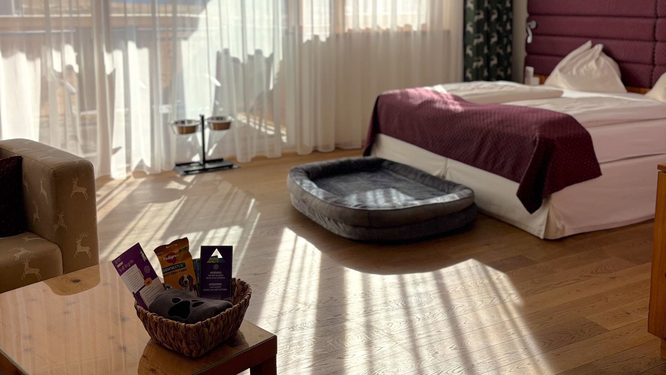 Von der Terrasse der Suite gelangt man in den umzäunten Garten, der direkt an Spazierwege angrenzt. Weiters gibt es eine Panoramaterrasse im Narzissen Restaurant (Hunde erlaubt) und drei Außenbecken für Frauchen & Herrchen. (Hunde nicht erlaubt).
