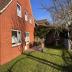 Terrasse mit Tisch und sechs Stühlen sowie Holzkohlegrill. Großer Garten zur Mitnutzung. Für Hunde stellen wir auf Wunsch einen mobilen Hundezaun (ca. 25 m) zur Verfügung. Im Garten befindet sich außerdem ein Spielturm mit zwei Schaukeln und Rutsche für Kinder.