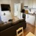 Im Inneren erwartet Sie ein heller Wohn- und Essbereich mit gemütlicher Eckcouch, Smart-TV und Essplatz. Die Küche ist vollständig ausgestattet, sodass Sie sich auch im Urlaub bequem selbst versorgen können. Zwei Schlafzimmer bieten Platz für bis zu vier Personen, zusätzlich steht im Wohnbereich eine Schlafcouch zur Verfügung.