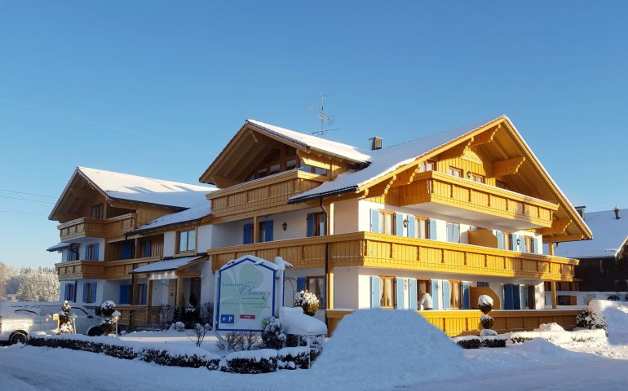 Unser Landhaus ist oberhalb von Nesselwang, an einem ruhigen und sonnigen Platz. Die 21 Ferienwohnungen bieten ausreichend Platz für Singles, Paare und Familien mit Haustieren. Die Ferienwohnungen sind gemütlich und praktisch eingerichtet und haben alle einen Balkon zum Entspannen. Für kühlere Tage steht die Sauna bereit. Ein Tischtennisraum mit Kicker und Dart lädt zum Match ein. Für die Kinder haben wir ein Spielzimmer eingerichtet. Ein Spielplatz zum Toben ist vorhanden. Die Liegewiese und der Grillplatz bereichern unseren Außenbereich.