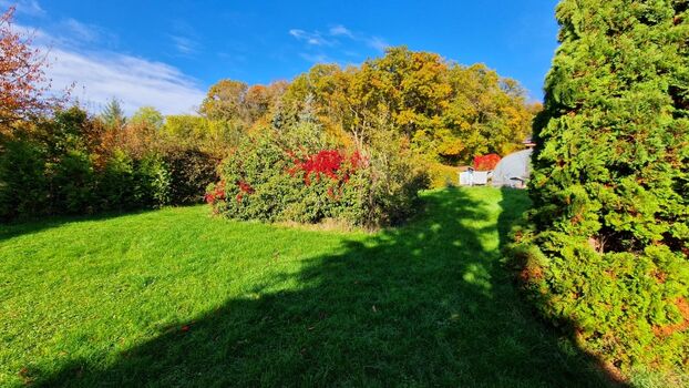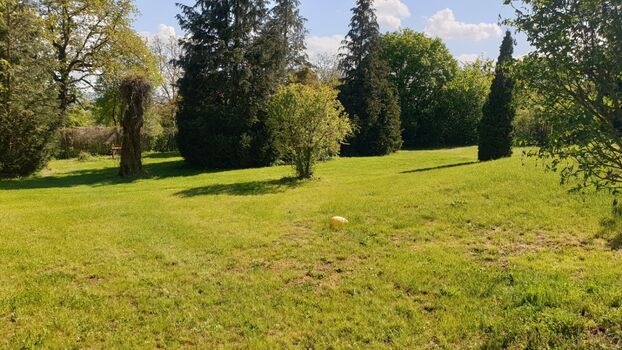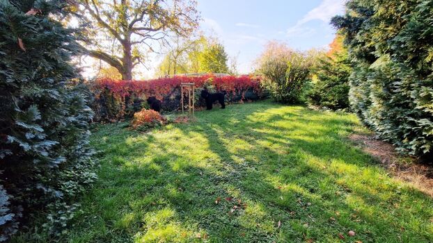 Das Grundstück ist komplett mit Maschendraht eingezäunt. Es besteht aus zwei Grundstücken, welche durch eine Zwischentür getrennt werden können.