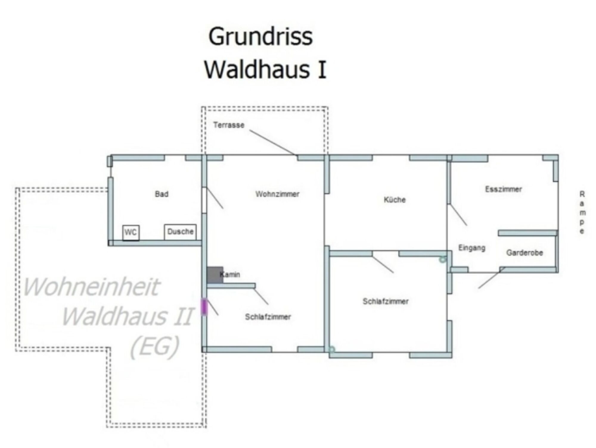 Die barrierefreie Ferienwohnung kann mit der Ferienwohnung "Waldhaus II", die ebenfalls für 4 Personen eingerichtet ist, als ganzes Haus gemietet werden.