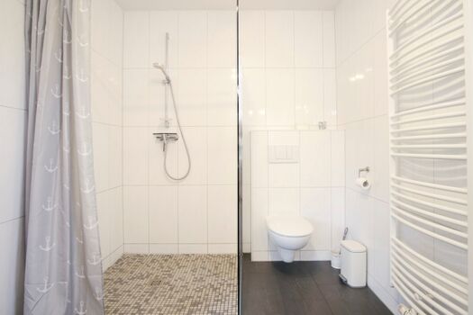 Bad: 1 Duschbad mit WC, Fön; Fußboden: Fliesen mit Fußbodenheizung