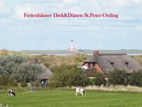 Unsere historische Reetkate -ein ehemaliges Fischerhus- liegt direkt am Sandstrand / Deich in St. Peter-Ording.