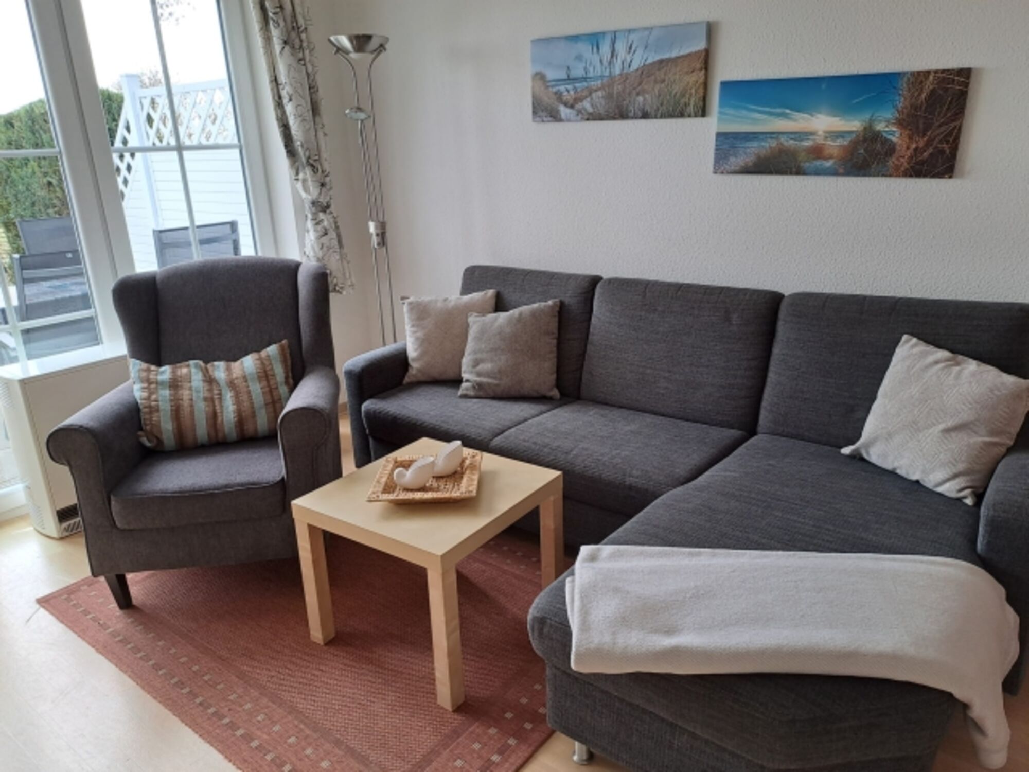 Sonniges Ferien-Reihenhaus mit 60 qm Wohnfläche und ca. 12 qm vollmöbilierter Terrasse mit Grill und Garten mit Sonnenliegen. Das Ferienhaus verfügt im Erdgeschoss über eine offene Küche, Essplatz, Wohnzimmerüber und eine Abstellkammer. Im Obergeschoss befindet sich ein Schlafzimmer mit Doppelbett (Hier gibt es die Möglichkeit ein Kinder-Reisebett zuzustellen) und ein Schlafzimmer mit 2 Einzelbetten, sowie das Duschbad.