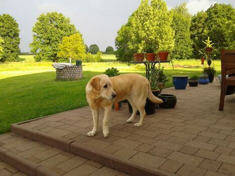 Wir selbst haben seit 25 Jahren Labradore, bis vor einigen Jahren die Rüden Max und Seth aus England, zur Zeit nur noch Paula (gelb, 13 Jahre). Der Kumpel von Paula, der pensionierte Blindenhund Argo ist vor kurzem leider verstorben. Der neue Kumpel heißt Balou und ist eine ganz lieber Labradormix, 8 Jahre. Das Grundstück ist so groß und auch in sich 1 x abgezäunt, dass unser Hund Ihrem Hund nicht begegnen werden, wenn Sie das nicht wollen. Viele Gäste wünschen sich allerdings gelegentlich eine gemeinsame "Hundetobestunde" mit Balou, Paula ist leider auch schon verstorben..