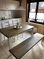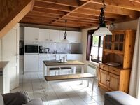 Im 35m² großen Erdgeschoß befindet sich ein Wohn-Eßzimmer mit komplett ausgestatteter Küche (incl. Geschirrspüler, Backofen, Mikrowelle, ***Gefrierfach), Badewanne, sowie ein seperates WC. In der etwa 20m² großen ersten Etage befinden sich zwei seperate Schlafzimmer (Doppelbett und zwei Einzelbetten)