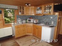 2-Platten Herd, Cerankochfeld, Kühlschrank mit Gefrierfach, Korkenzieher / Flaschenöffner, Gewürze (Salz, Pfeffer, Zucker), Geschirrhandtücher, Mülltüten, Essplatz in der Küche, TV in der Küche