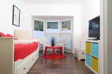 Die Wohnung bietet ein Schlafzimmer mit einem Doppelbett, sowie ein Schlafzimmer mit einem ausziehbaren Doppelbett. Zusätzlich ist im Wohnzimmer ein Schlafsofa für 2 Personen.