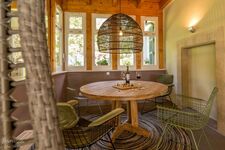 Das Grundstück ist komplett eingezäunt und hat einen direkten Zugang vom Ferienhaus aus. Es bietet Ihnen ein Entree mit Bibliothek, ein runder Tisch mit viel Platz für Familienspiele, ein Hängesessel mit Blick in den eigenen Garten, Loungebereich mit Kamin, Infrarot-Wärmekabine, frische Brötchen am Sonntagmorgen, Inselküche, DeLonghi Nespresso Maschine, Flatscreen-TV...