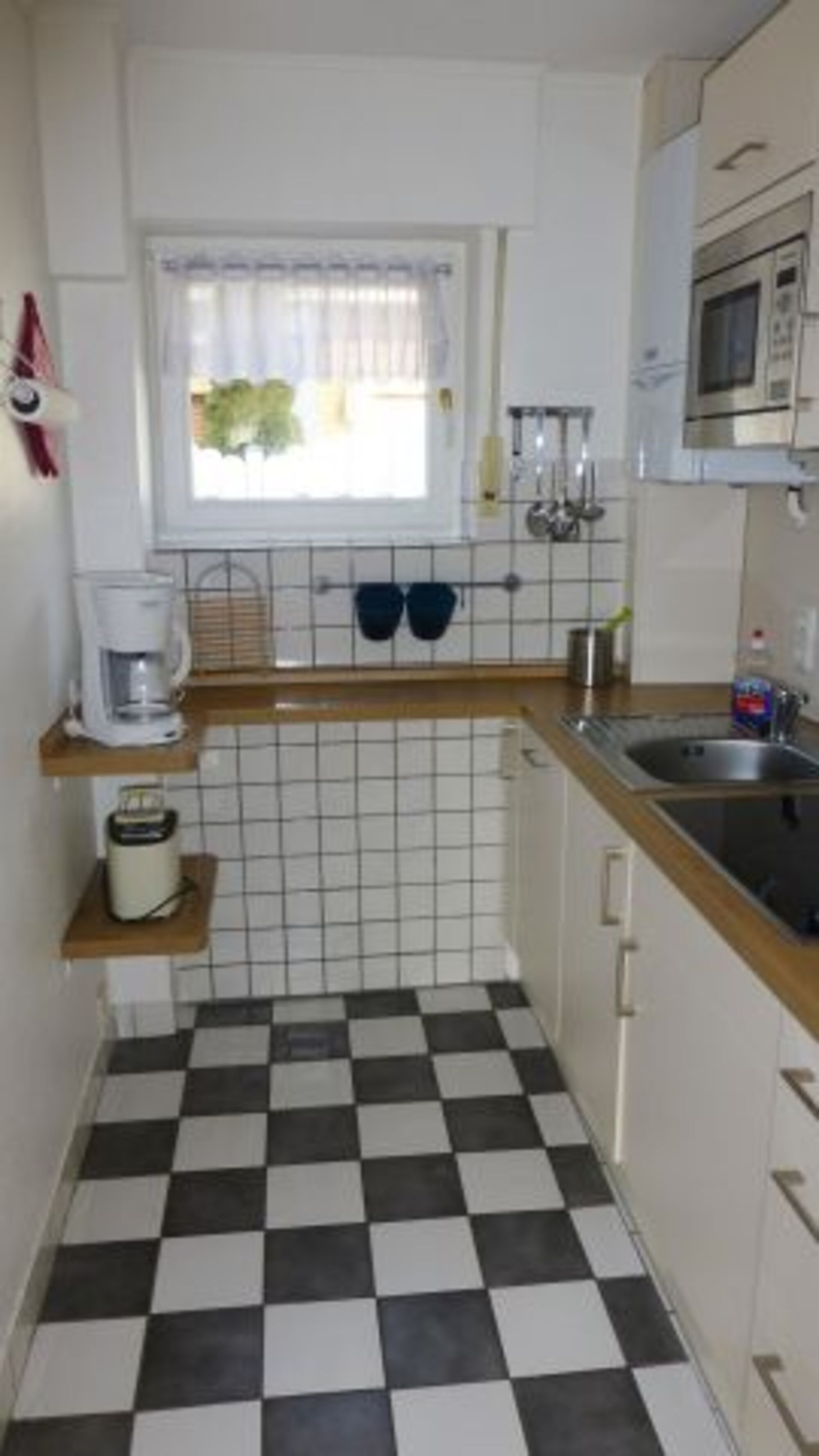 Sie finden eine komplett eingerichtete Einbauküche mit 4 Kochplatten und Backofen, div. Elektrogeräten (Kaffeemaschine, Wasserkocher, Toaster) sowie mit kompletten Hausratsgegenständen, Service`s u. Essbestecke, vor.