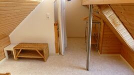 Die Ferienwohnung hat einen großen Ess- und Wohnbereich mit Zugang zur Terrasse. Im 1. Geschoss befinden sich 2 Schlafzimmer und das Badezimmer. Ein Schlafzimmer verfügt über einen Südbalkon. Zwei weiter Schlafmöglichkeiten befinden sich im ausgebauten Spitzboden.
