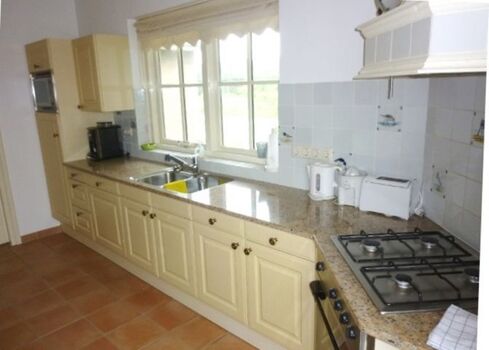 1 Küche, 4 Schlafzimmer, 1 Wohnflur, 2 Vollbäder, 2 Gäste - WCs sowie eine umlaufende Terrasse mit einem großen Windfang.