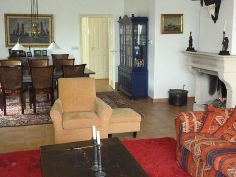 Das moderne, großzügige Ferienhaus verfügt über 1 Wohn-/ Esszimmer mit einem Gaskamin,