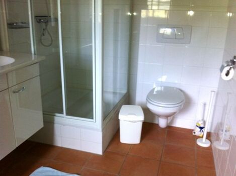 Bad: 1 Vollbad mit Dusche und WC im EG, 1 Vollbad mit Dusche und WC im OG, 1 Gäste-WC im EG, 1 Gäste-WC im OG, Föhn; Fußboden: Stein / Fußbodenheizung