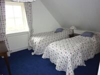 Schlafräume: 1 Schlafzimmer mit 1 Doppelbett im EG, 1 Schlafzimmer mit 1 Doppelbett im OG, 2 Schlafzimmer mit je 2 Einzelbetten im OG; Fußböden: Teppich Doppelbett 1,80 x 2,00m