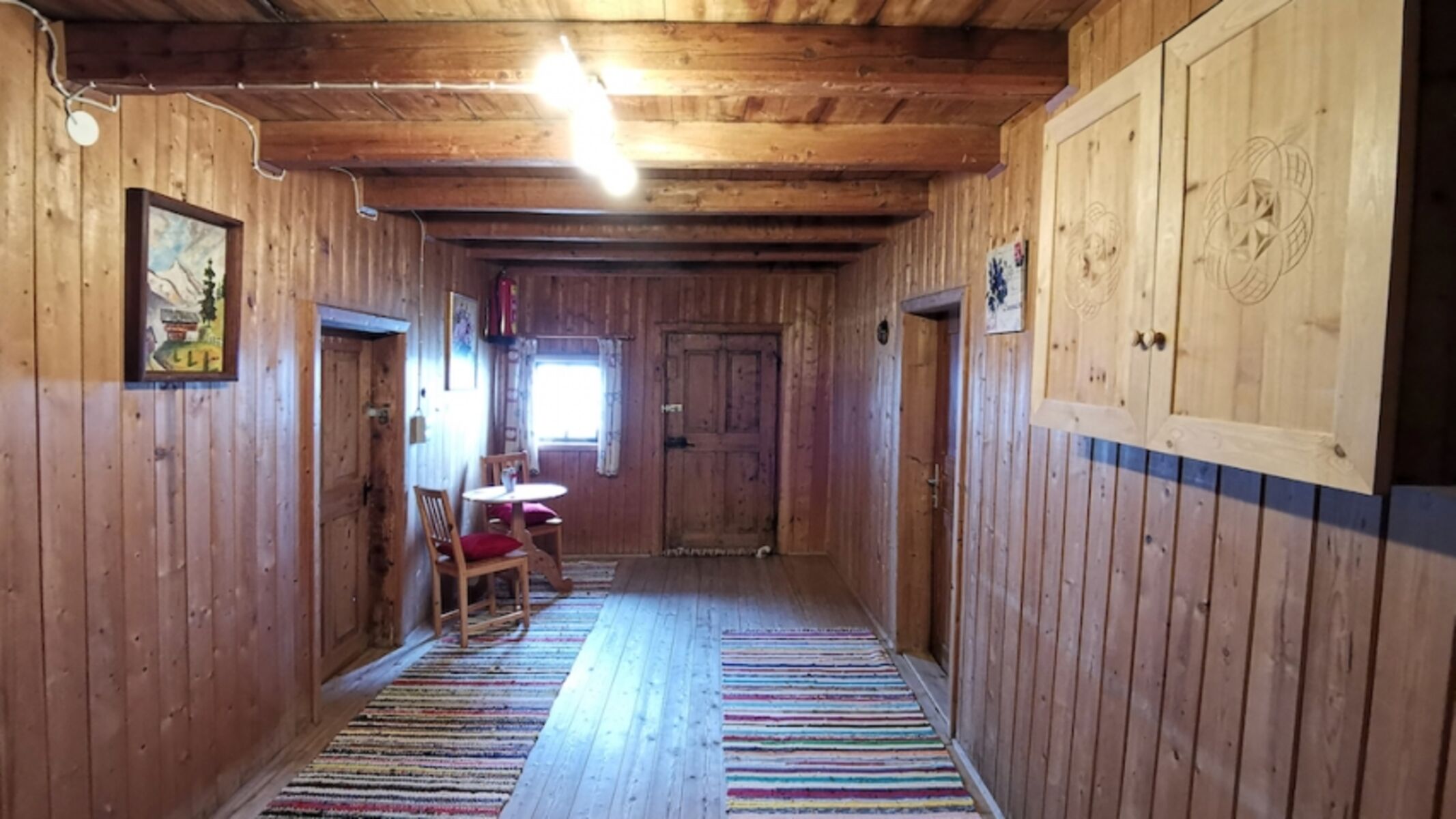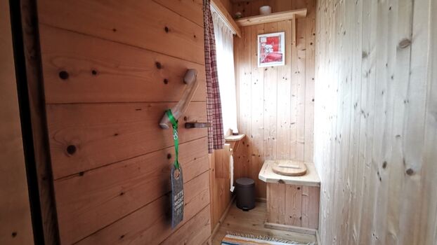 sowie einem Badezimmer und einer sehr schönen Holztoilette.