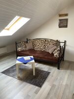 Im Obergeschoss befinden sich ein weiteres Schlafzimmer sowie eine Galerie mit Ausziehcouch (2 Schlafmöglichkeiten) je mit Sat-TV.