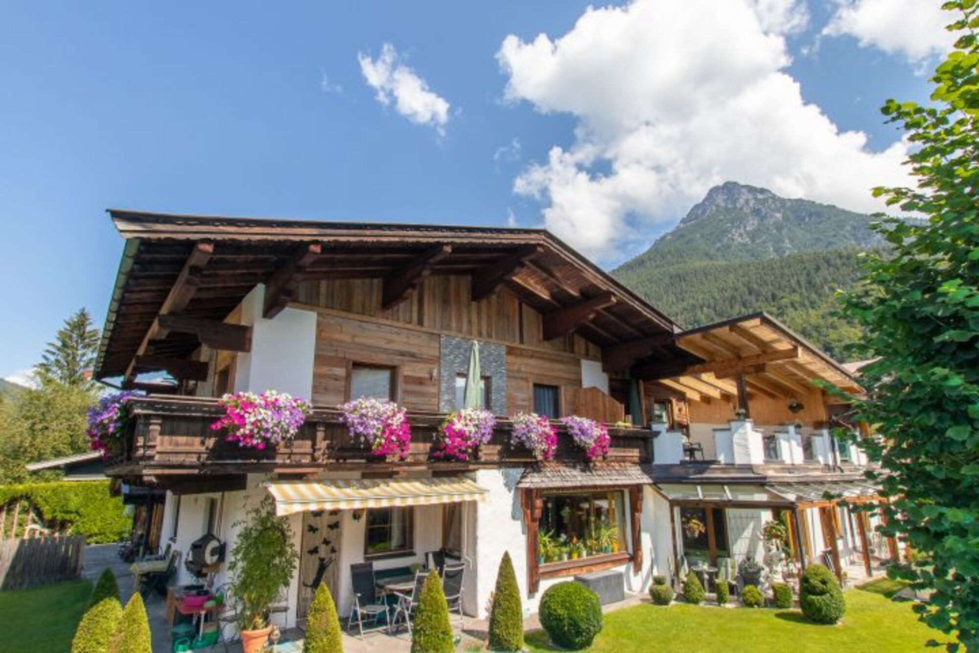 Die beiden Wohnungen Andrea und Petra haben je 65 m² und bestehen aus einer gemütlichen Küche, Wohnzimmer im Tiroler Stil, ein oder zwei Doppelschlafzimmer,, großem Bad, WC, Flur und einem großen, sonnigen Balkon zur alleinigen Benutzung.
