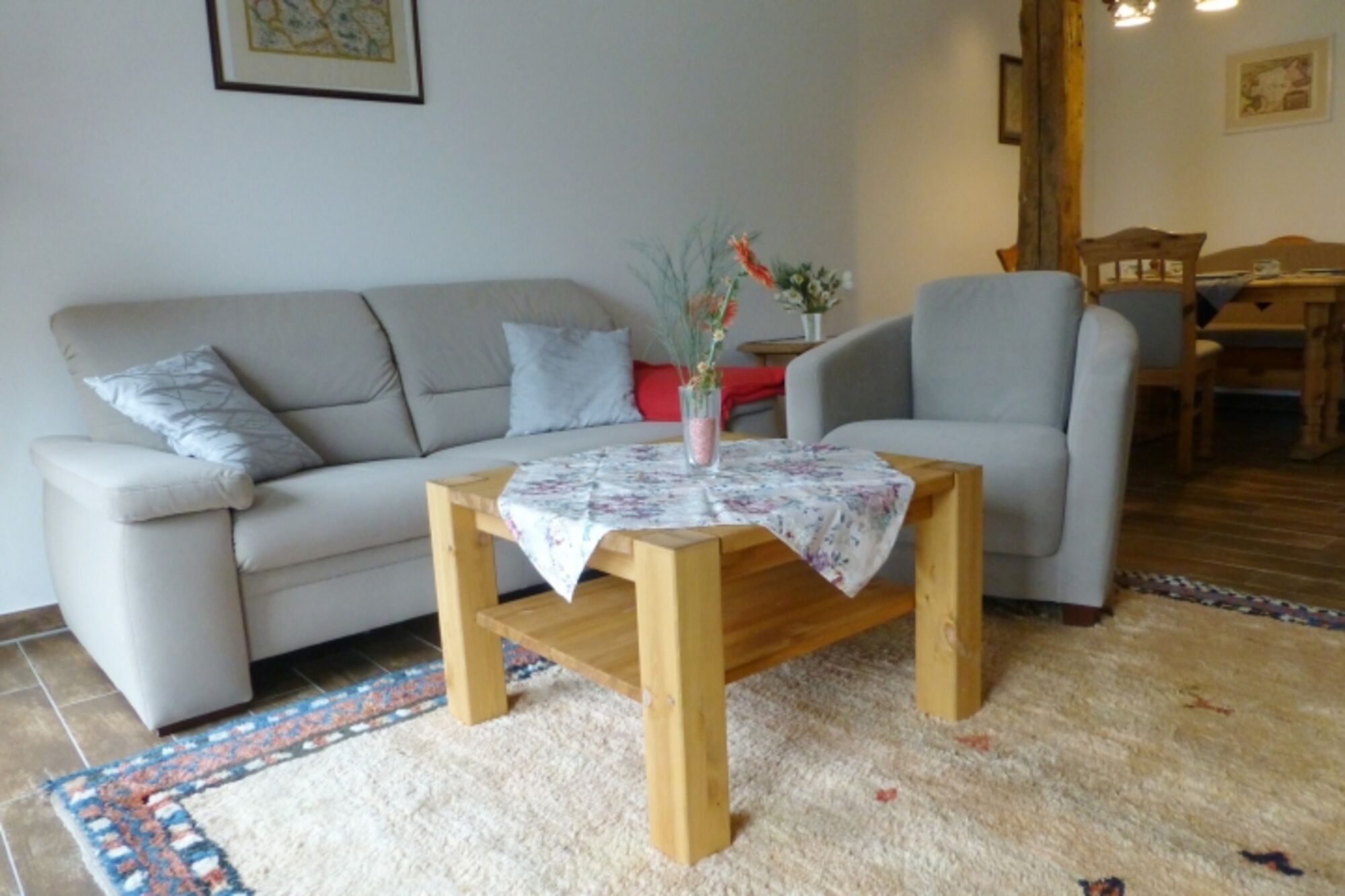 Komfortabel eingerichtete Ferienwohnung idyllisch gelegen. Die Wohnung ist ca 95 qm groß und verfügt über 3 Schlafzimmer für bis zu 6 Personen. Sie hat 2 Badezimmer mit Dusche, sowie eine voll ausgestatte Küche.