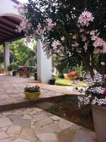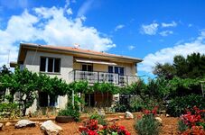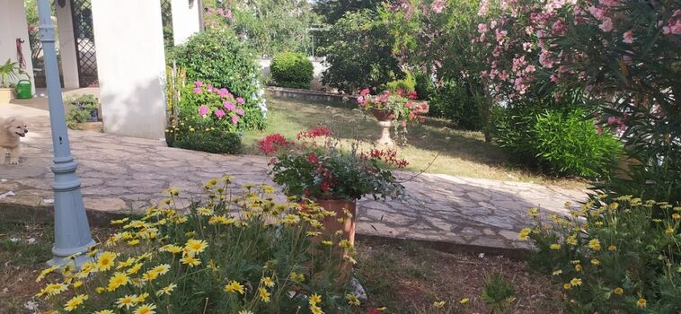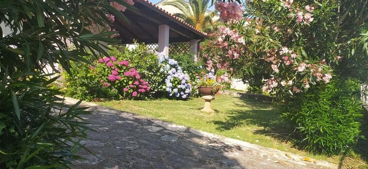 Unser einladendes Haus in ausgefallener Bauweise ist ruhig gelegen (Sackgasse). Auf einem kleinen Hügel zweistöckige, geschlossene Villa verfügt über eine einmalige Lage. Umrundet von gepflegtem mediterranem Garten spendet es Ihnen Sonnen und Schatten Seite.. Das Haus hat 3 Wohneinheiten mit getrennten Eingängen. Die 1. Etage bewohnen wir (2 Pers.u.1 Hund) und 2 Apartment vermieten wir. Die Appartements sind Liebevoll mit vielen Details ausgestattet. Die geräumige Sonnenterrasse auf der 2.Etage mit dem einmaligen Blick aufs Meer und Pinien- und Kiefernwald schenkt Ihnen ein zweites Wohnzimmer. Das kleine Appartement in der Südlage bietet viel Platz auf der Gartenterrasse. Seitlich des Hauses befindet sich die überdachte Terrasse mit Holzmöbeln und ist ideal für gemütliche Grillabende oder einfach zum Ausruhen. Die Außenbeleuchtung sorgt bei Dunkelheit für eine romantische Stimmung. Parkplatz ist vor dem Haus. Wir, Ihre Gastgeber, helfen Ihnen und freuen uns, das Sie sich bei uns wohl fühlen.